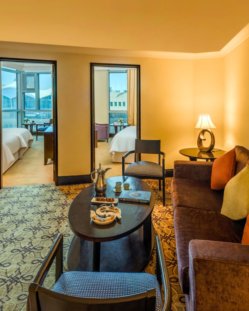 24 小时客房内用餐体验以国际和东方特色美食为特色,为味蕾营造美妙的探索体验。客房内会音频直播麦加禁寺的所有祈祷仪式。