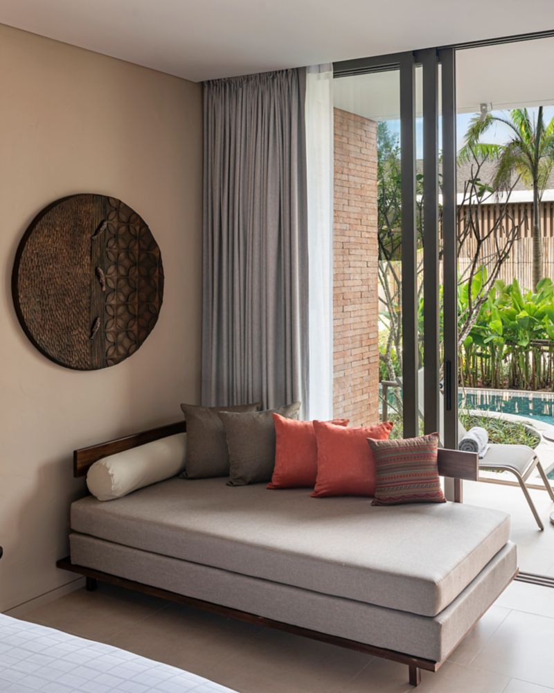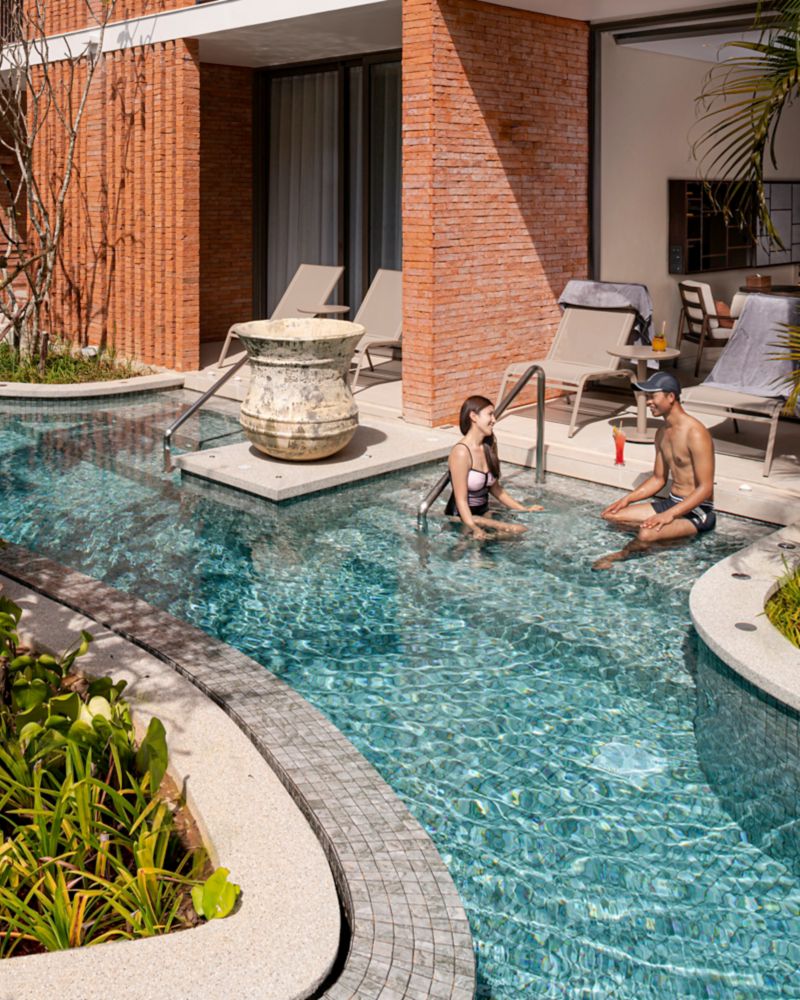 连通泳池的豪华客房配备特大床,将现代风尚与静谧氛围融为一体。从你的特大床步入私人阳台,拥揽池畔景致,重焕活力。这处 44 平方米(474 平方英尺)的休憩天地,融合现代泰式海滨小屋的美学设计、便捷的科技设备与贴心设施,助你在放松身心与激发创意之间找到平衡。