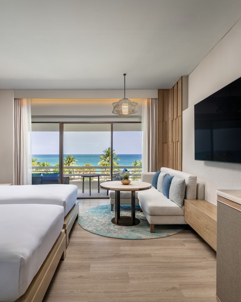 豪华海景双床房将令人心旷神怡的海洋景观与 44 平方米(474 平方英尺)的精心设计空间融为一体。悦享放松与高效的无缝融合,房内配备高速无线网络和专用书房等设施,更有宁静的安达曼海美景为伴。