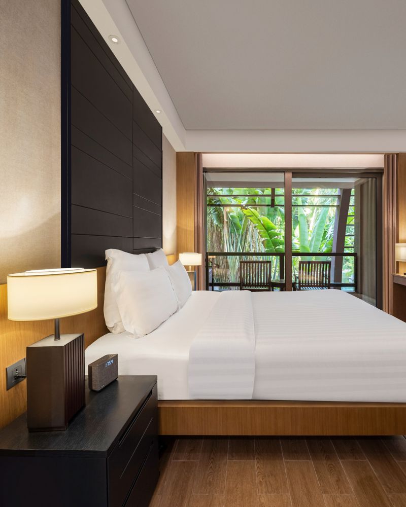 面积45平米,位于酒店5层和6层,尽赏南中国海海景和热带园林景观。客房内为现代东南亚装饰风格或古典中式装饰风格,客房设有观海阳台、房内配备免费无线网络及高速上网接口、42寸液晶平板电视、咖啡茶器具、浴室设有独立瑞雨花洒淋浴区域及浴缸。
