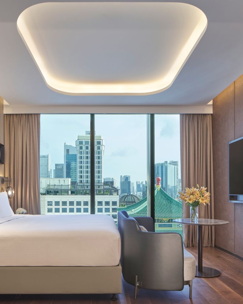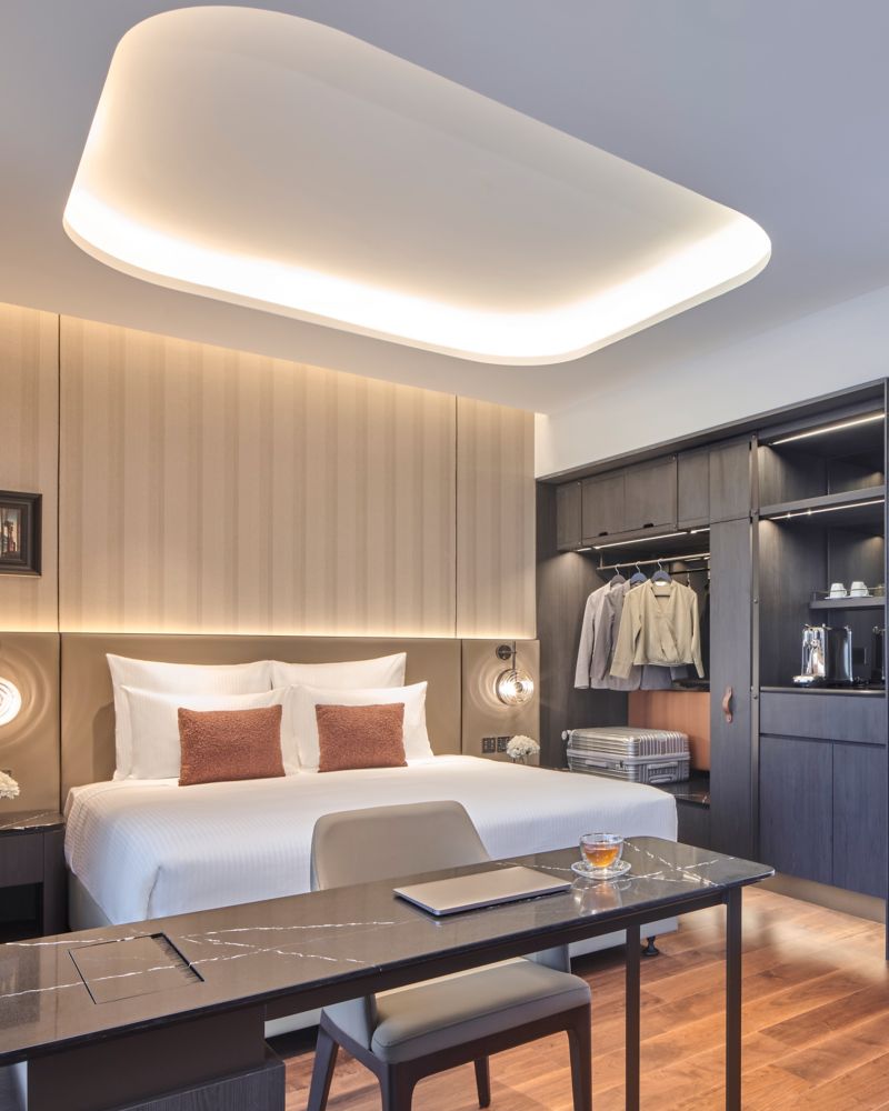 开放式套房面积 33 平方米(355 平方英尺),配备一张特大床,设计巧妙,设有浴缸和内置净水系统,并提供专属行政酒廊礼遇。免费享用迷你吧,体验休憩与创意的巧妙融合。