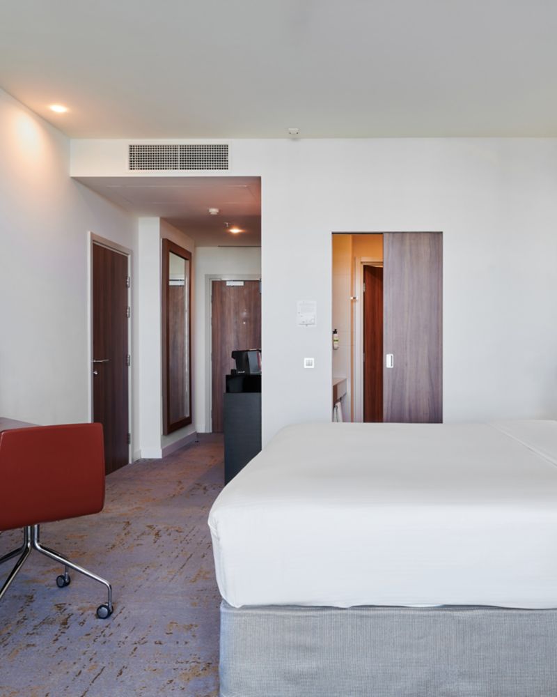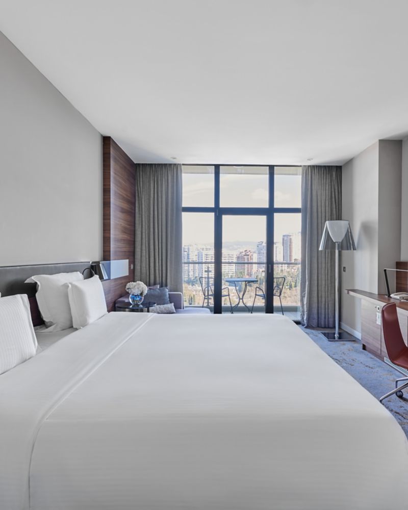 高级房,面积为 33 平方米(355 平方英尺),带阳台,可欣赏城市景观。卧室配备 1 张舒适的特大床和放松枕头。"热带雨"淋浴系统会立刻让您身心愉悦,精力充沛地开启美好的一天。