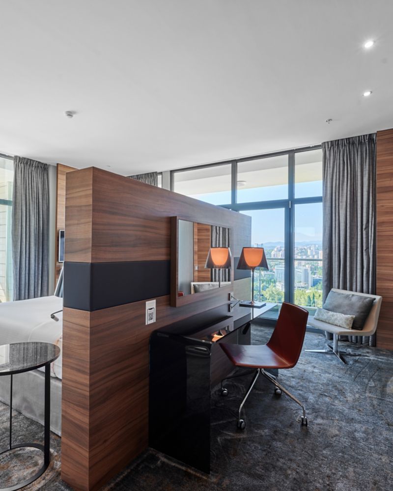 总统套房面积达 120 平方米(1290 平方英尺),巧妙融合休憩与创意空间。坐拥焕活身心的景观,配备专为放松休憩、静享安宁而设计的贴心设施,为你打造一处理想的休憩港湾。