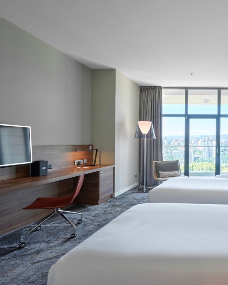 高级房,面积为 33 平方米(355 平方英尺),带阳台,可欣赏城市景观。卧室配备 2 张舒适的单人床和放松枕头。"热带雨"淋浴系统会立刻让您身心愉悦,精力充沛地开启美好的一天。