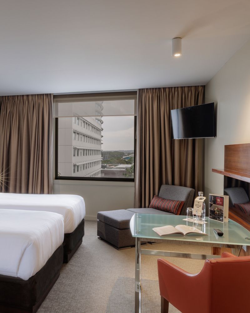 高级客房(设两张单人床)面积 34 平方米(366 平方英尺),采用现代设计,将悉尼的迷人景致与智能科技融为一体。在这个专为激发创意与放松身心而设计的空间里,你可尽享片刻惬意时光,房内设有大理石浴室和贴心设施。