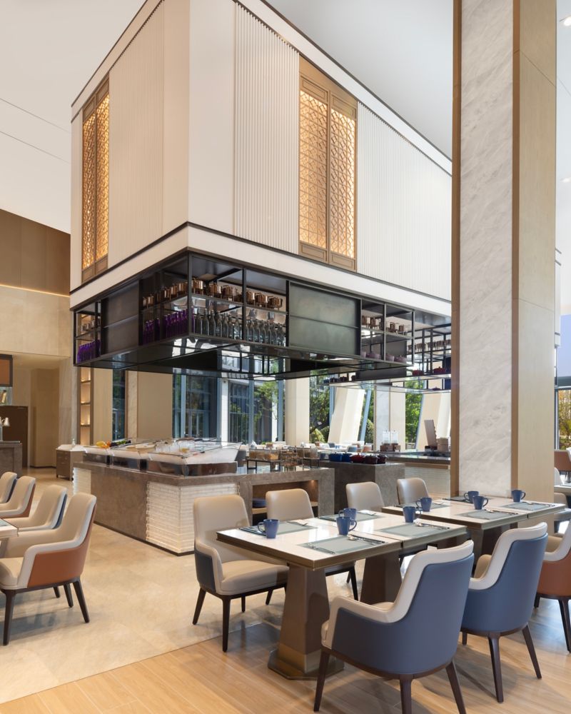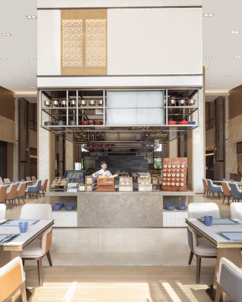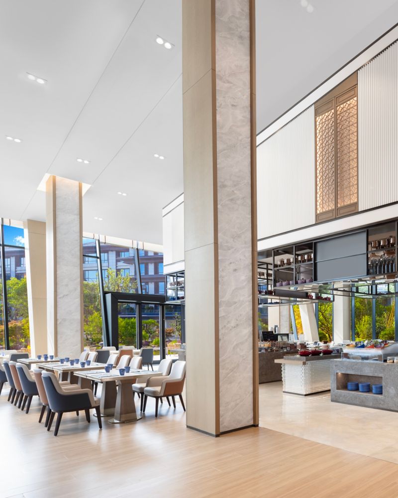 在罗曼全日制餐厅,体验中西烹饪艺术的创意融合,新鲜海产与仙居特色风味在雅致的环境中交相辉映。明亮的开放式厨房和精致氛围,为商务午餐或浪漫晚餐提供了理想的背景,风景如画的花园景观更添意境。