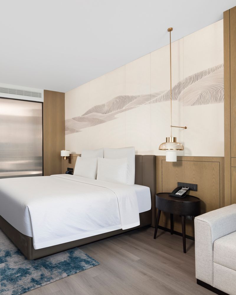 高级客房面积 28 平方米(301 平方英尺),是一处理想的休憩天地,将惬意时光与创意巧思巧妙融合,配备人性化科技与贴心设施,更有活力焕发的迷人景观,助您焕活身心,激发灵感。